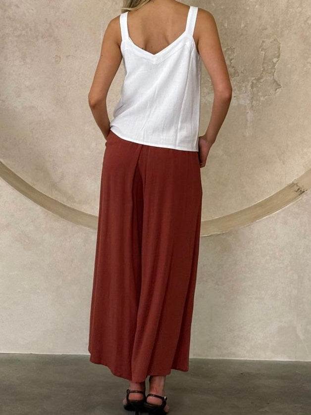 Tara Wide Leg Linen Pants- Terracotta