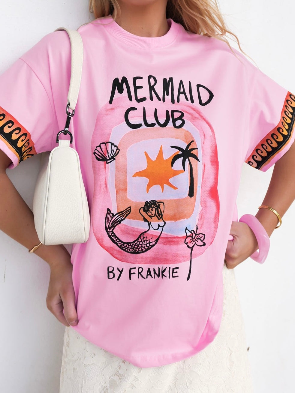 Effortlessly cool and casual, the Mermaid Club Tee is designed for easy, everyday wear. It features a ribbed crew neckline, short sleeves with subtle accents, and a bold front graphic that makes a statement. Crafted for a comfortable, relaxed fit, it’s the perfect piece for laid-back days with a hint of personality.