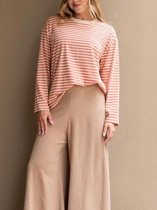Oversize Stripe Long Sleeve Tee- Tangerine