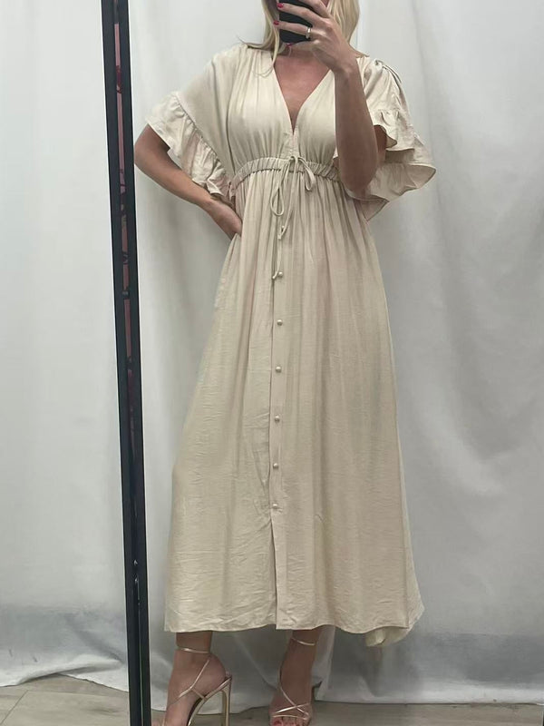 Frill Sleeve Drawstring Waist  Lined Rayon