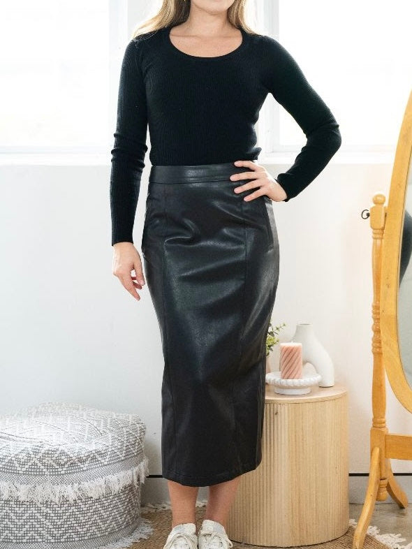 Faux Leather Look Pencil Skirt