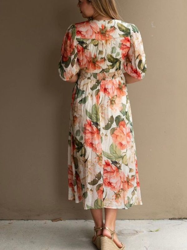 Peony Floral Button Midi Dress